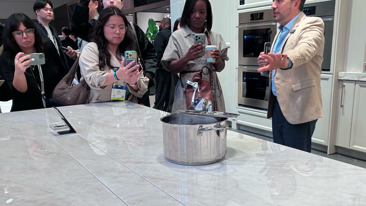 While the promise of a hidden cooktop is compelling, it leaves us with some unanswered questions, and we weren’t allowed near the «burner» during the second tour of the booth. Technicians were busy fixing a problem below, though the specifics of the issue were unclear.