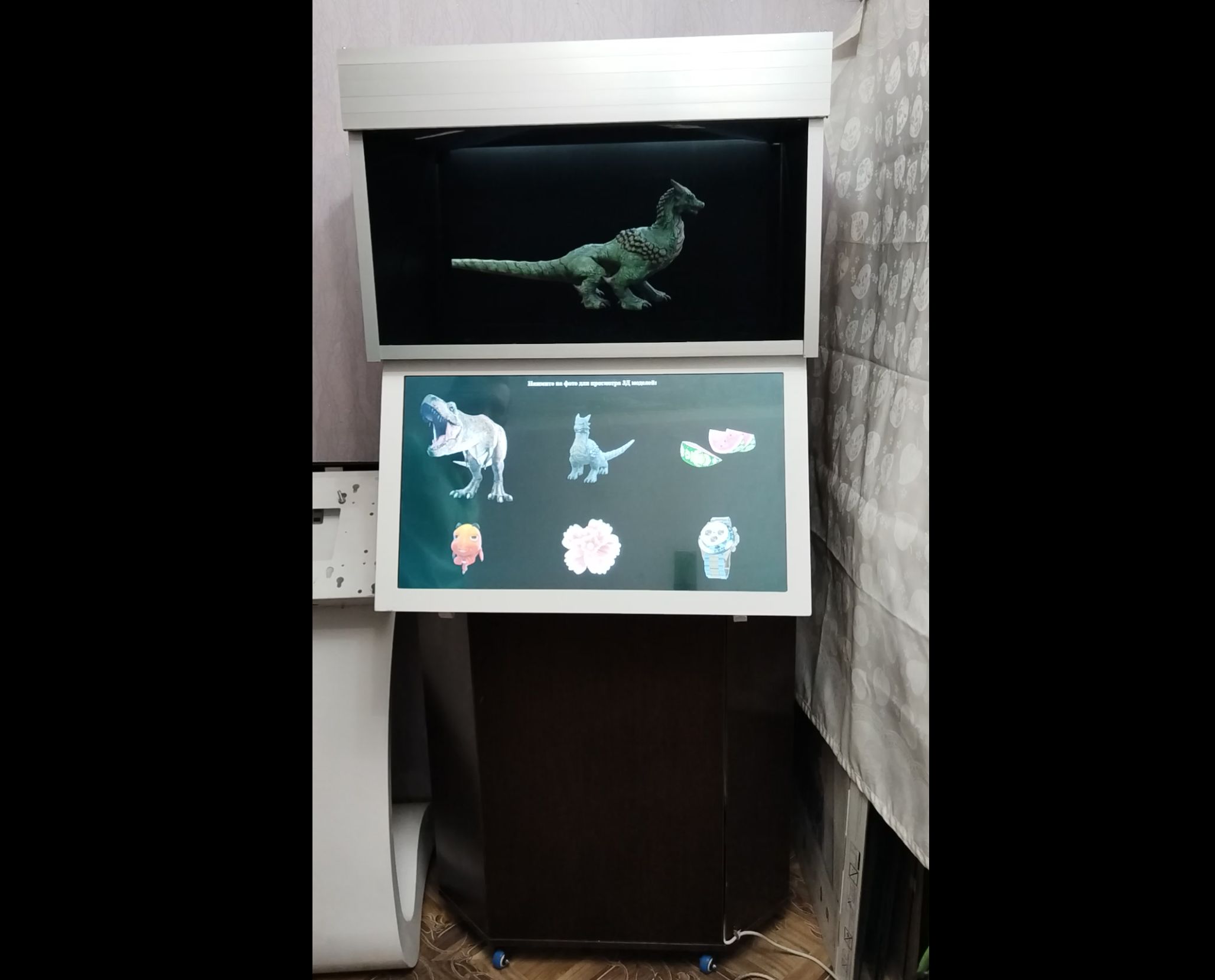 Новая модель интерактивного 3Д куба представляет собой голограмму, демонстрирующую 3Д контент и оснащенную сенсорным экраном.