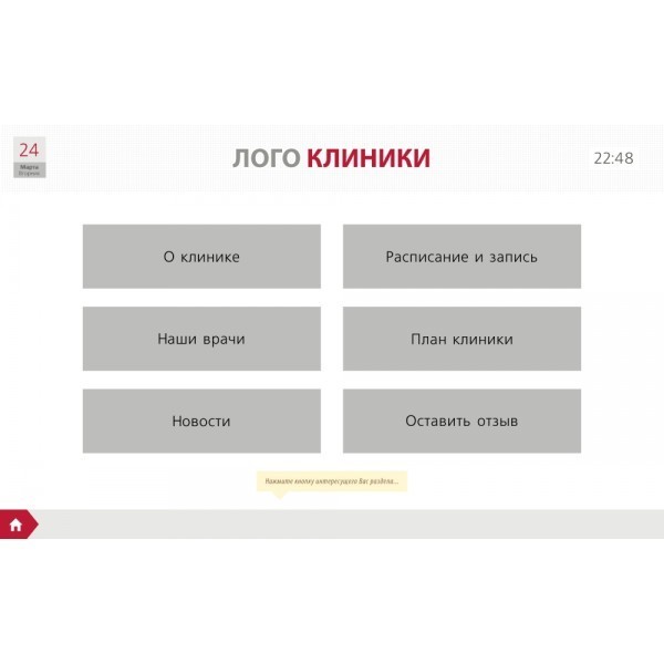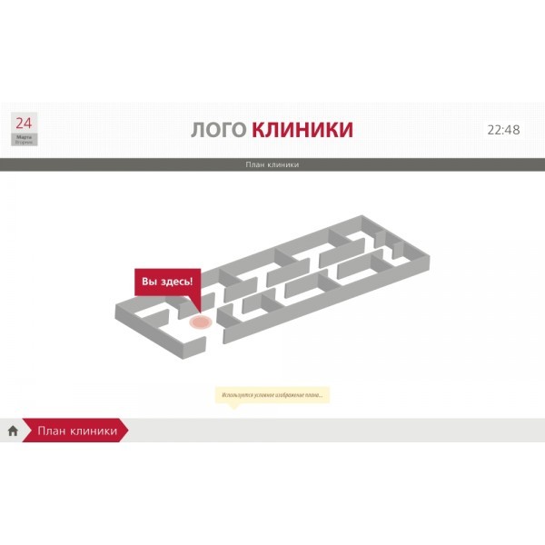 Наглядная информативная карта с подробным описанием. Пациент за считанные минуты сможет самостоятельно найти нужный ему кабинет, не отвлекая от работы других сотрудников.