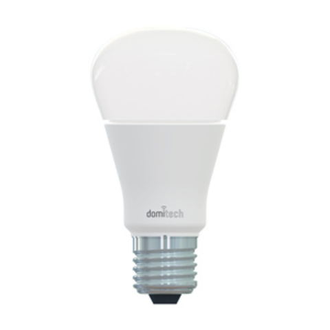 Светодиодная LED лампа Domitech для удаленного управления освещением. Проста в установке — нужно заменить существующую лампу на Domitech и вы всегда сможете управлять освещением с помощью вашего смартфона. Лампа светит теплым цветом, мощность свесчения эквивалентна 65Вт. Стандарт E27.