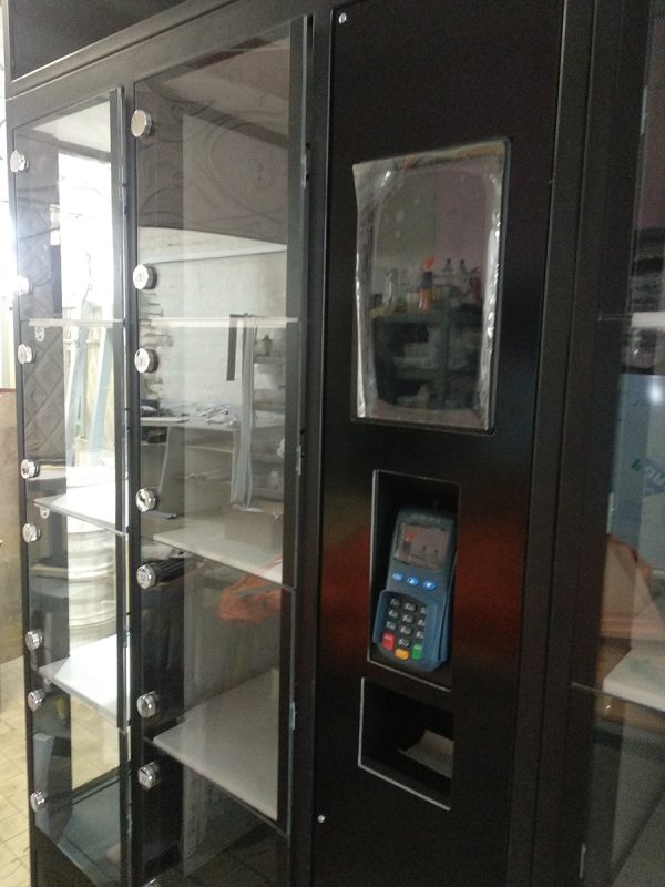 Автоматы сразу стали привычными, так как похожи на автоматические камеры хранения вокзалов. Они подходят для любых товаров. Единственный их недостаток — небольшой ассортимент. Мы производили постаматы и как обычные «камеры хранения», и для хранения охлажденного товара с поддержанием заданной температуры. Для постаматов обычно используются простейшие индикаторы и клавиатура, хотя можно ставить сенсорный видеомонитор от 5 дюймового до большого, насколько позволяет корпус автомата. Примечание: если вместо выдачи бумажного чека вы хотите использовать более дешевый вариант в виде облачного ККТ, то экран необходим, чтобы отобразить QR код фискального чека.